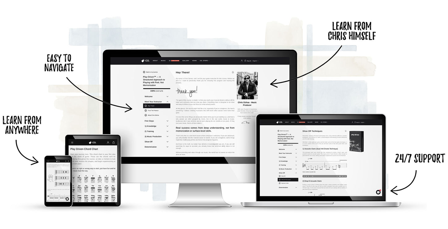 Your complete Play-Driven system — available whenever and wherever you practice.